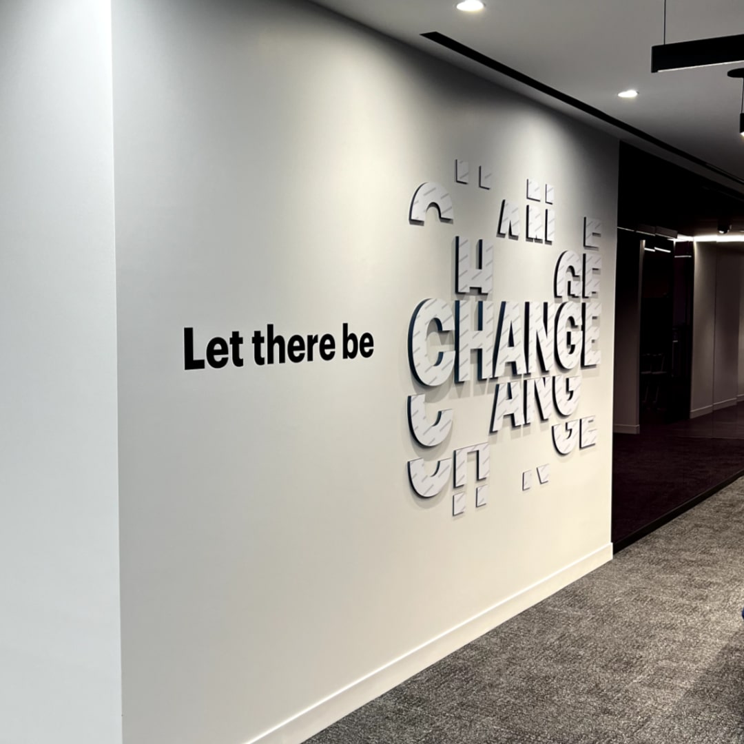 Offices come in all shapes and sizes, with a range of challenges and requirements. IDY Print is here to help! Whether you’re looking for custom designed, branded and textured sound baffling to elevate your space, vinyl wallpapers to make your offices pop, or other custom fabricated interior signage and branded way finding, let us in on your plans.